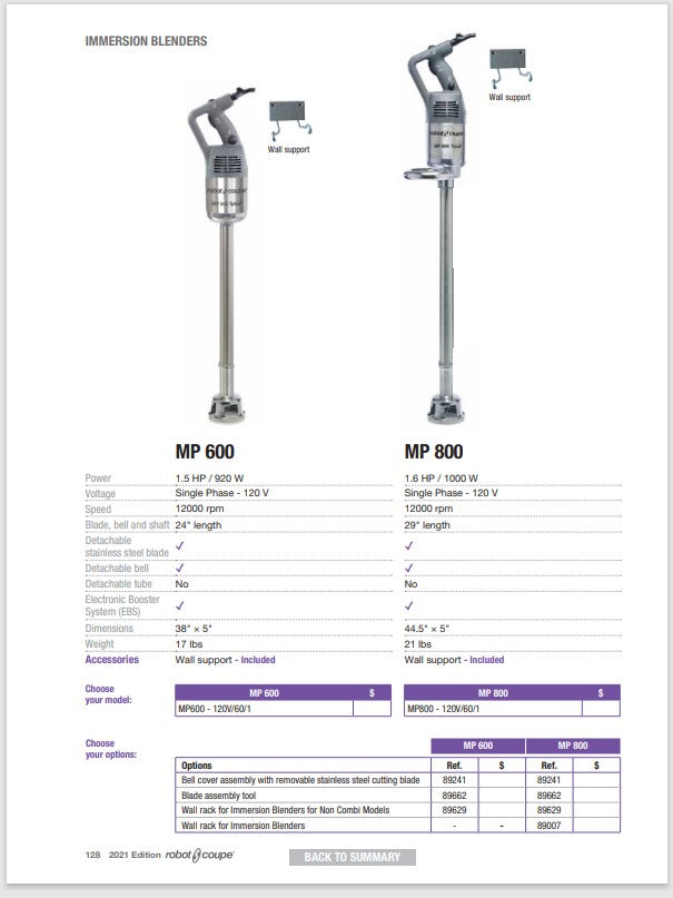 Removable stainless steel bell and knife for easy cleaning and maintenance.Patented Robot-Coupe device.
